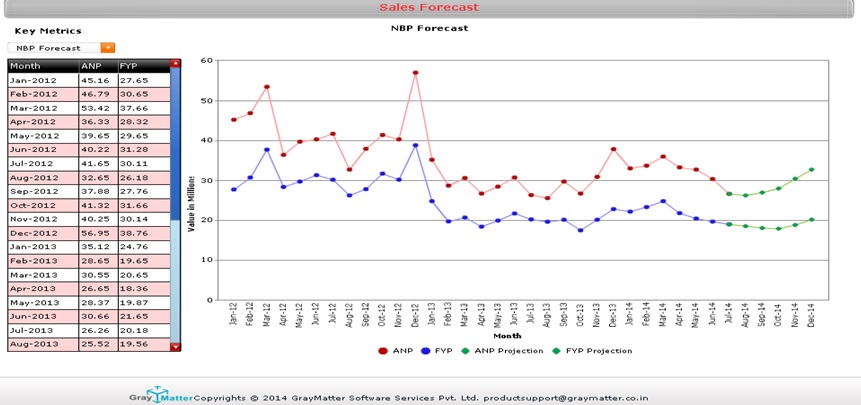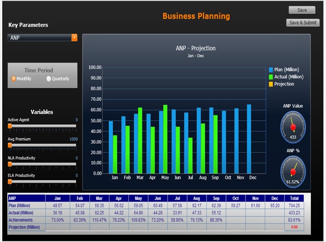 Variables such as Active Agent, Avg Premium, New Agent productivity & existing Agent productivity can be selected to project ANP for the next period